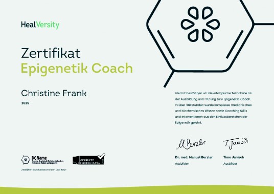 Wissenschaftliche Studien haben belegt, dass genetisch identische Zwillinge, das unterschiedlich entwickelte Epigenom -auf Grund ihres Lebensstils- über die Entstehung von Krankheiten entscheidet. Inzwischen ist bekannt, dass nur ca. 25% unserer Lebenserwartung durch unsere Gene festgelegt ist, ca. 75% wird durch unseren Lebensstil beeinflusst - und diesen hast DU selbst in der Hand!